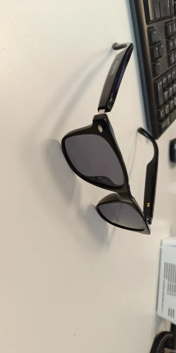 Mira cómo pasa de tener gafas de sol separadas + auriculares incómodos a un solo accesorio potente.